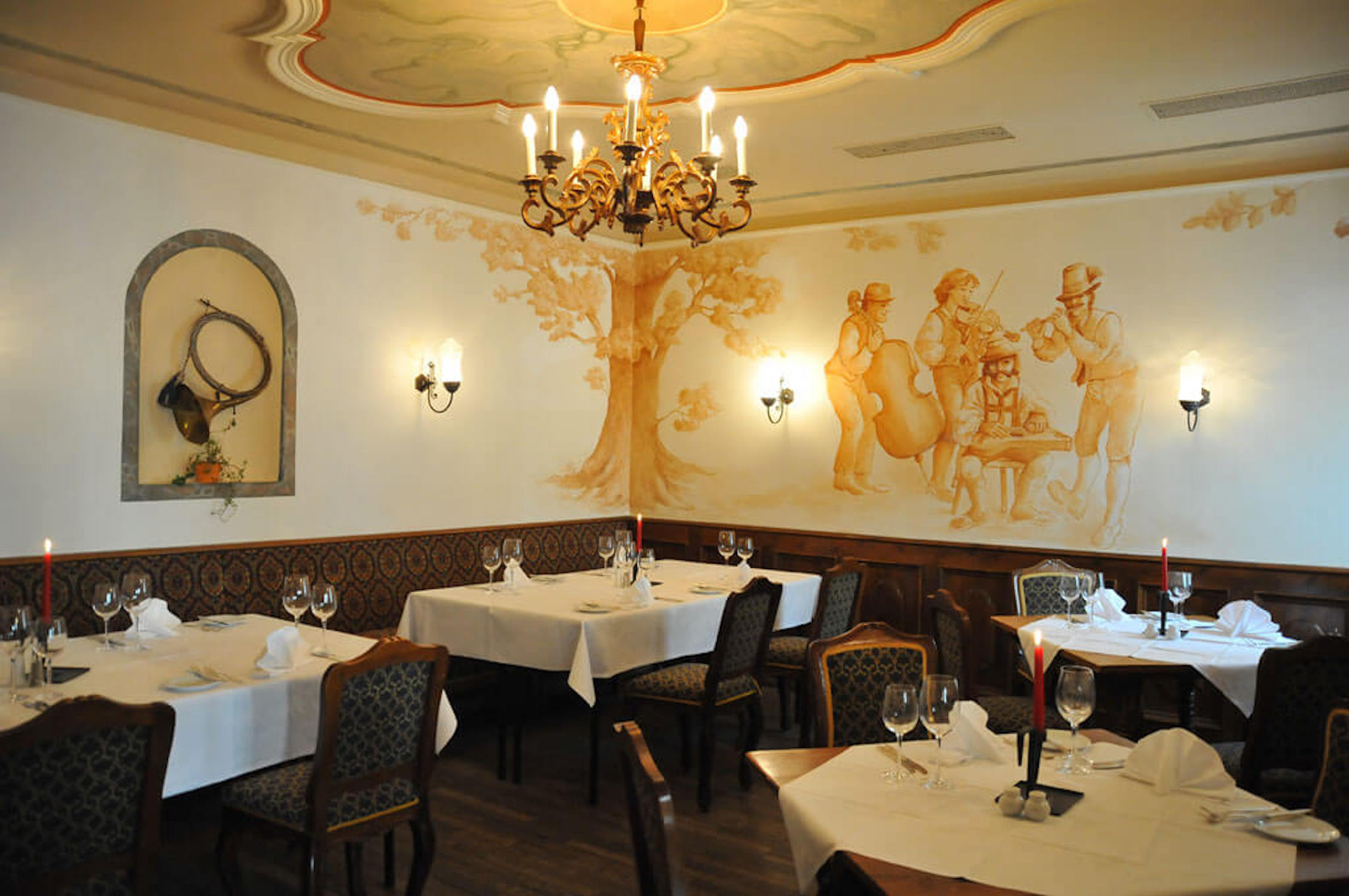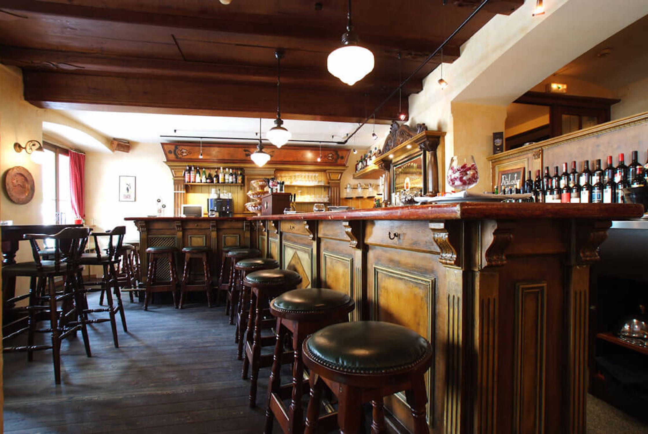 Restaurang Hotellet har en elegant restaurang med panoramautsikt över bergen. Här serveras middagar. I hotellbaren kan du njuta av en god drink före middagen eller bara när du har lust. Mellan 7:30 och 10:30 serveras en frukostbuffé.