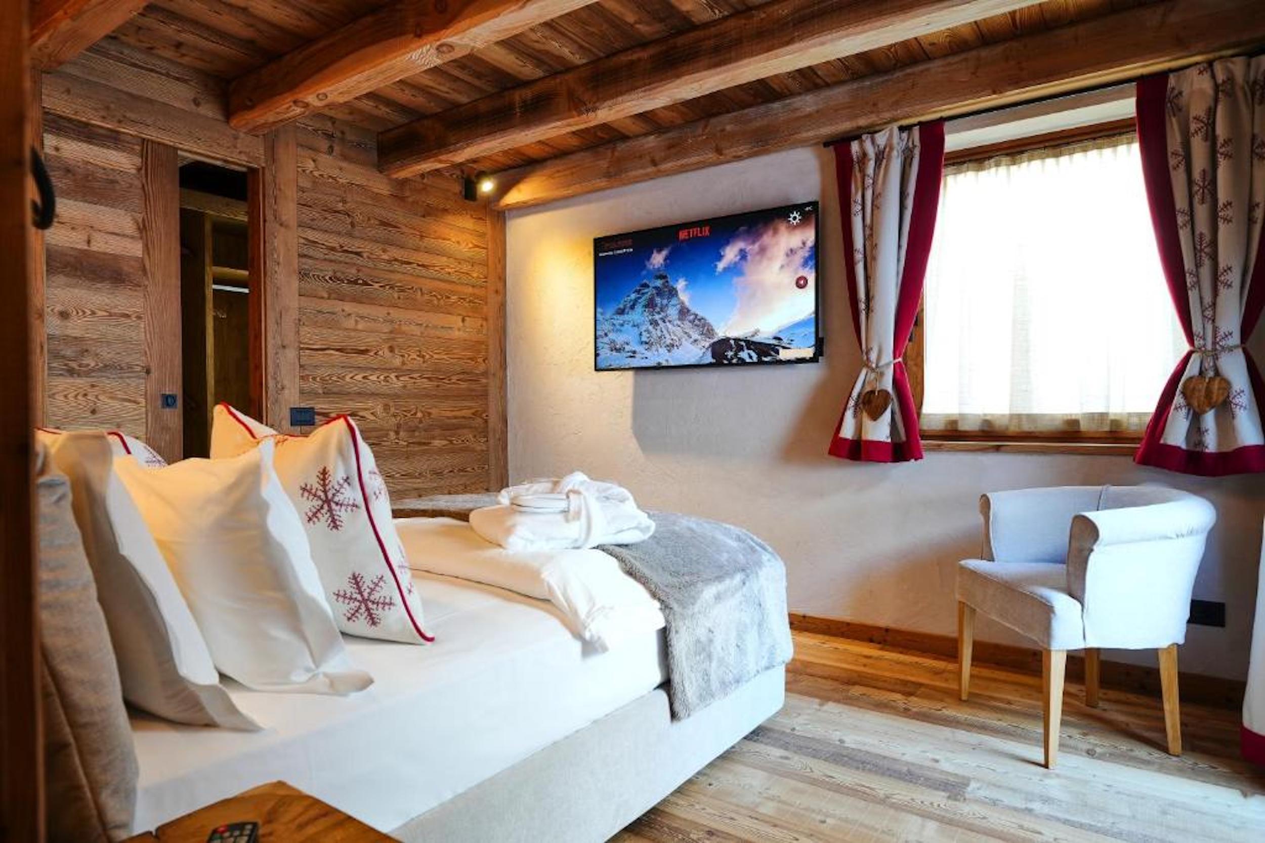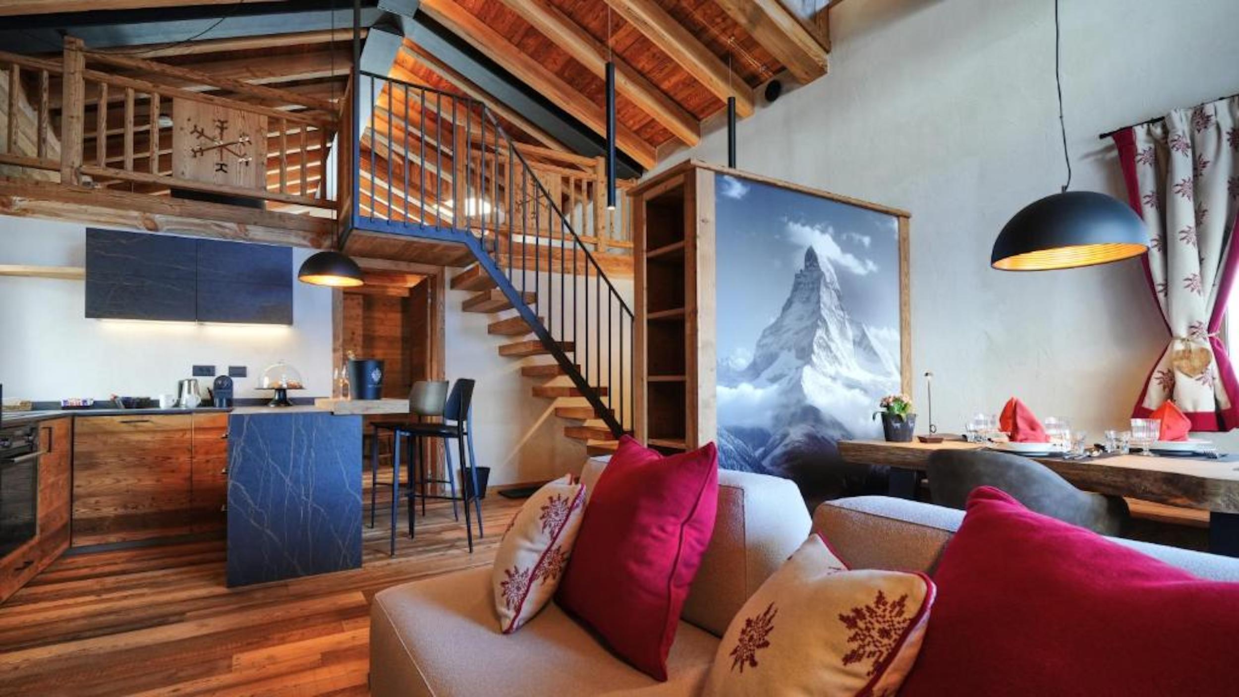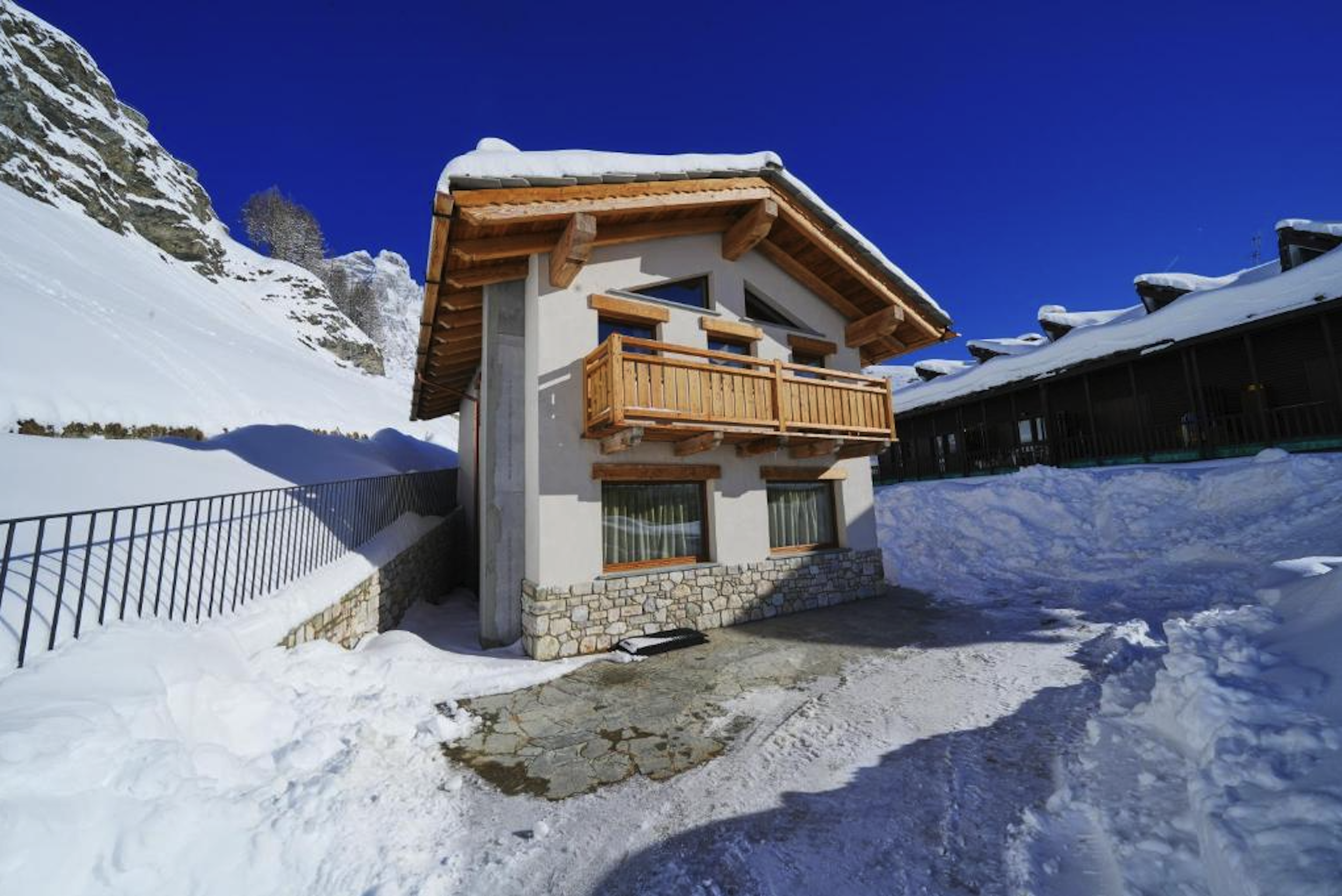 Huset ligger i lugna omgivningar vid foten av Matterhorn, bara några minuters promenad från Cervinias centrum och nära liften.