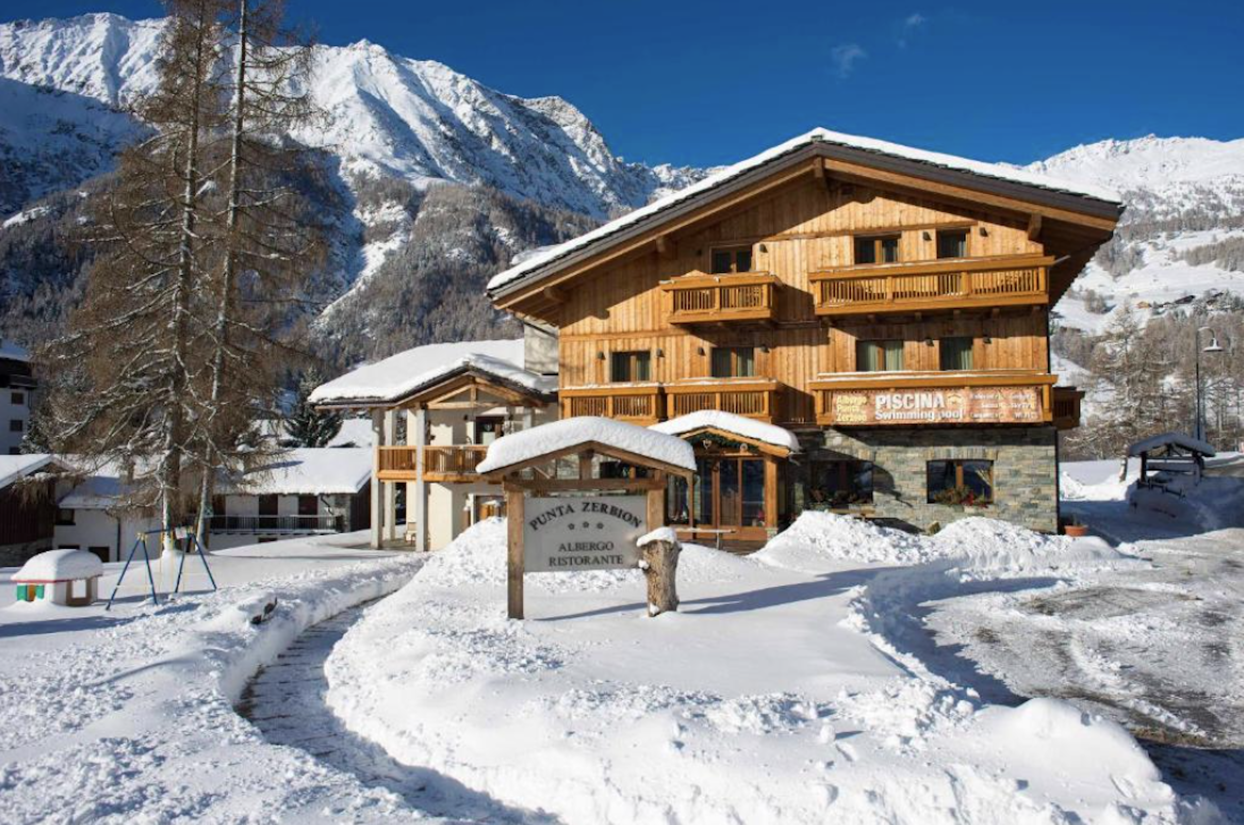 Hotel Punta Zerbion är ett rofyllt wellnesshotell som ligger perfekt beläget vid foten av den majestätiska Monte Rosa, vilket ger gäster enkel tillgång till Monte Rosa Ski-området och vackra naturleder. Den lugna platsen garanterar en avkopplande atmosfär, idealisk för att koppla av och njuta av förstklassig skidåkning i härliga