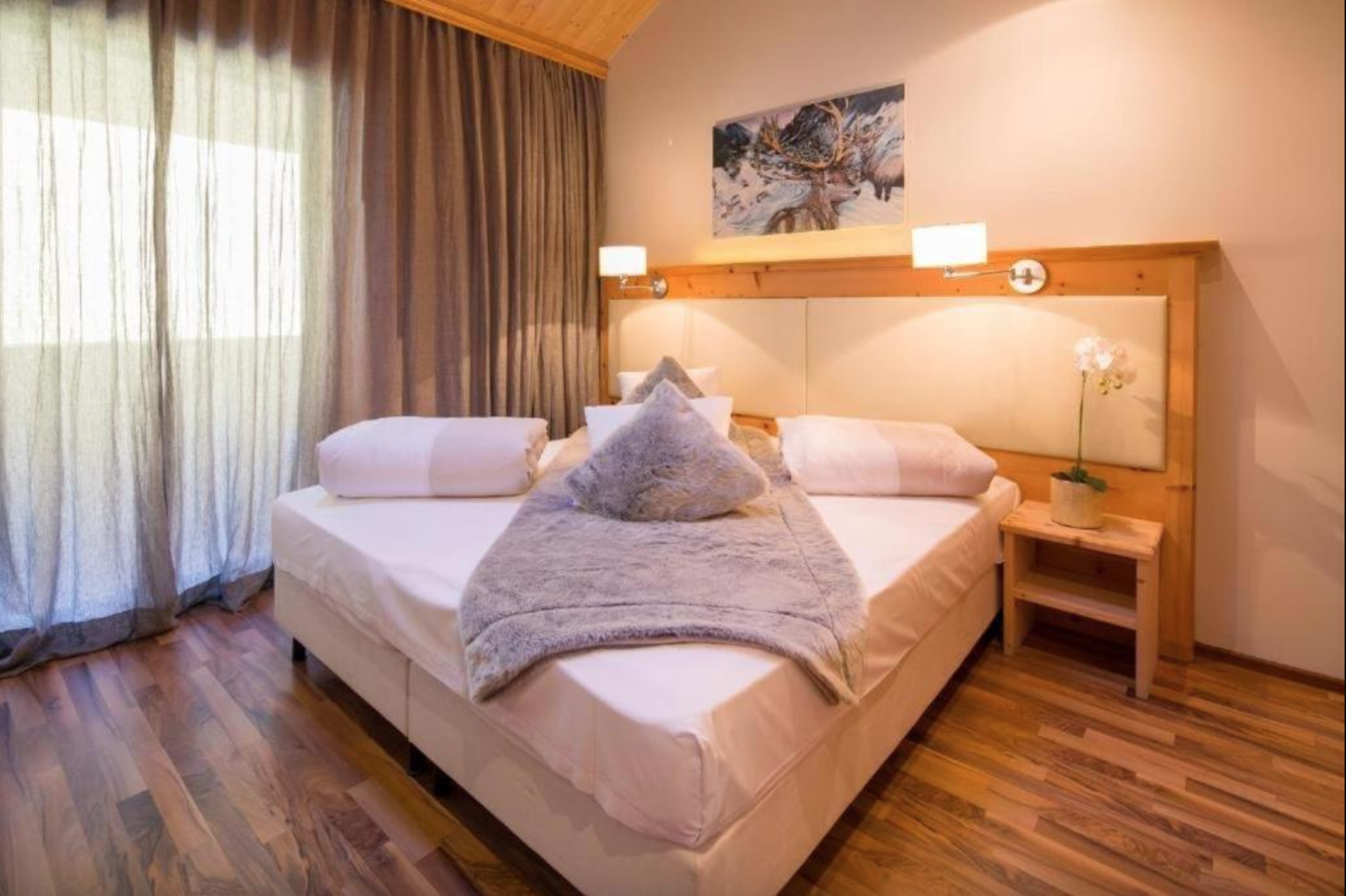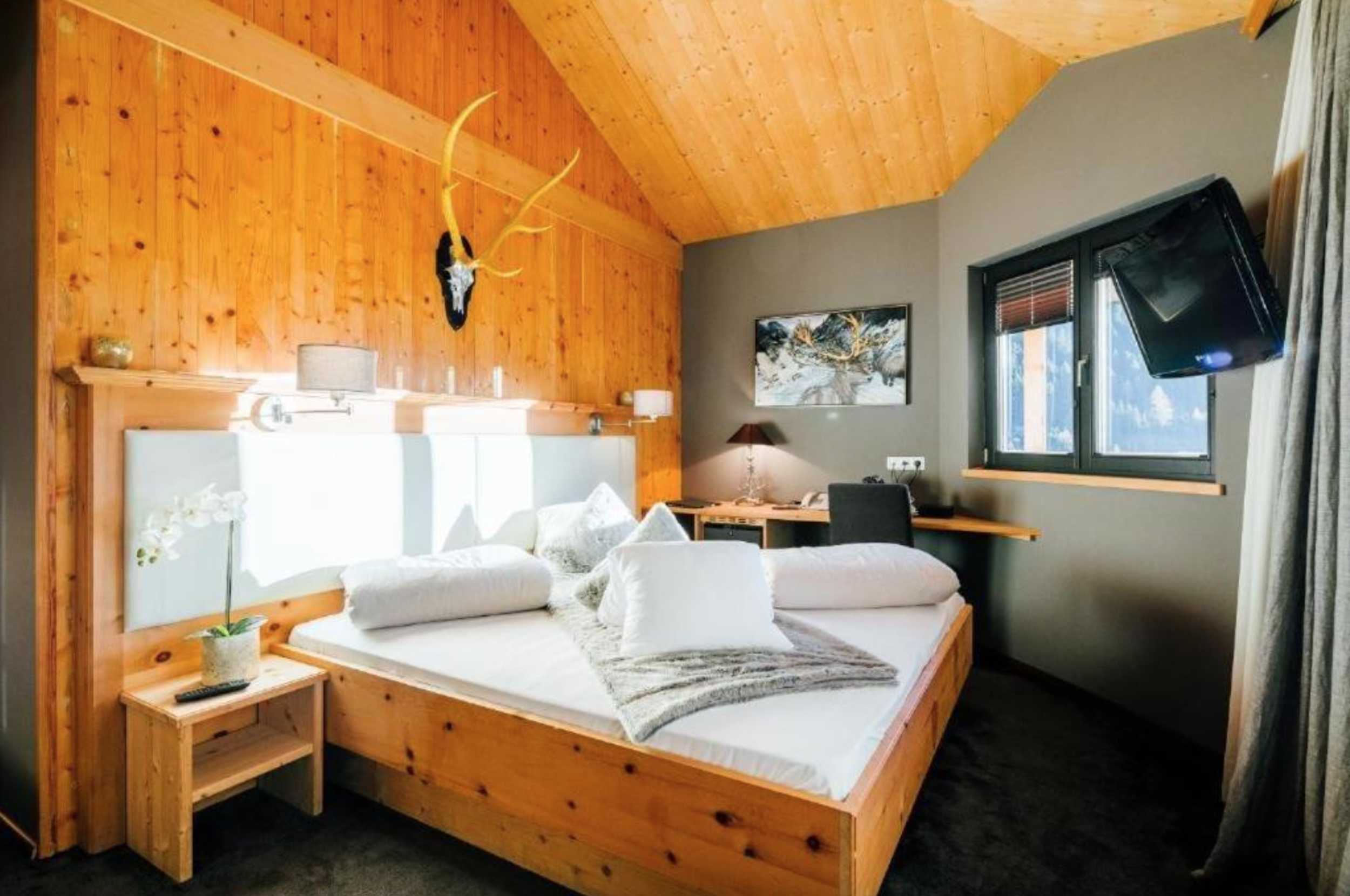 Hotellets rum och sviter är designade med fokus på komfort. Varje enhet erbjuder en fantastisk utsikt över bergen, minibar, gratis Wi-Fi och moderna faciliteter som säkerställer en bekväm vistelse. På morgonen kan du njuta av hotellets varierade frukostbuffé och få en perfekt start på dagen.
