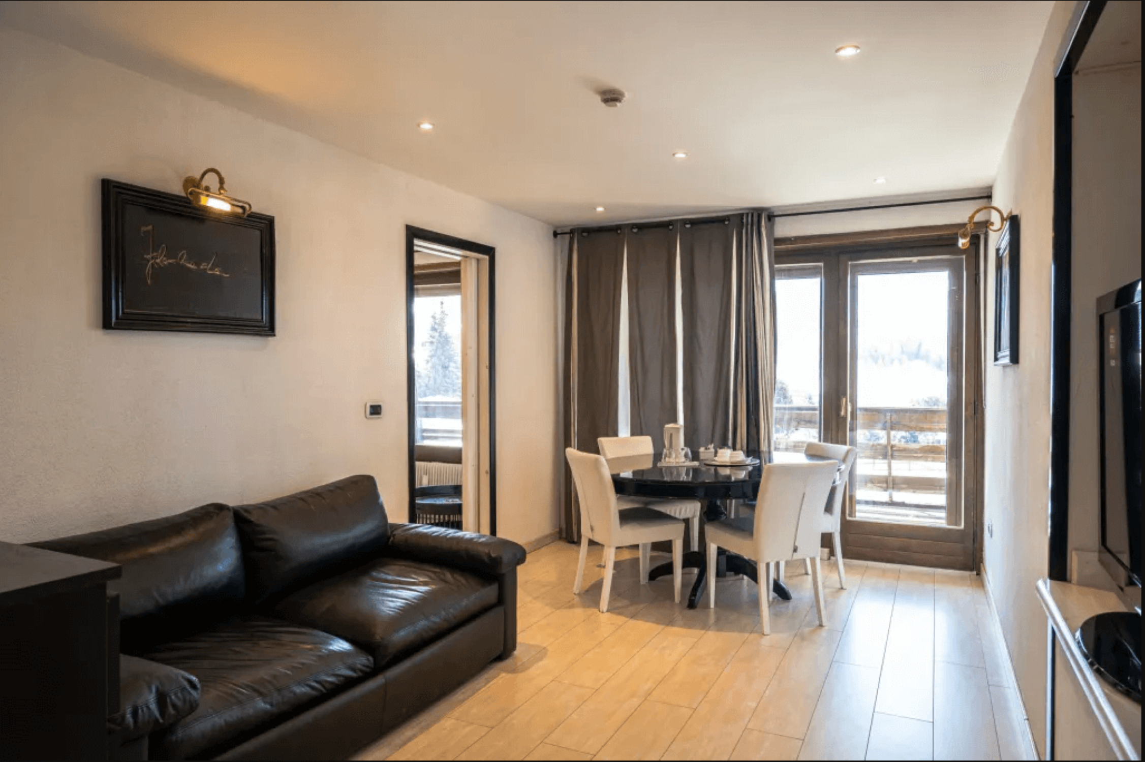 Större rum på 40 kvadratmeter med plats för totalt 4 gäster. Sviten har ett rum med en dubbelsäng och en bäddsoffa i vardagsrummet. Det finns ett bord med stolar, TV, wifi, kassaskåp och kylskåp. Det finns också ett eget badrum och en fin balkong.