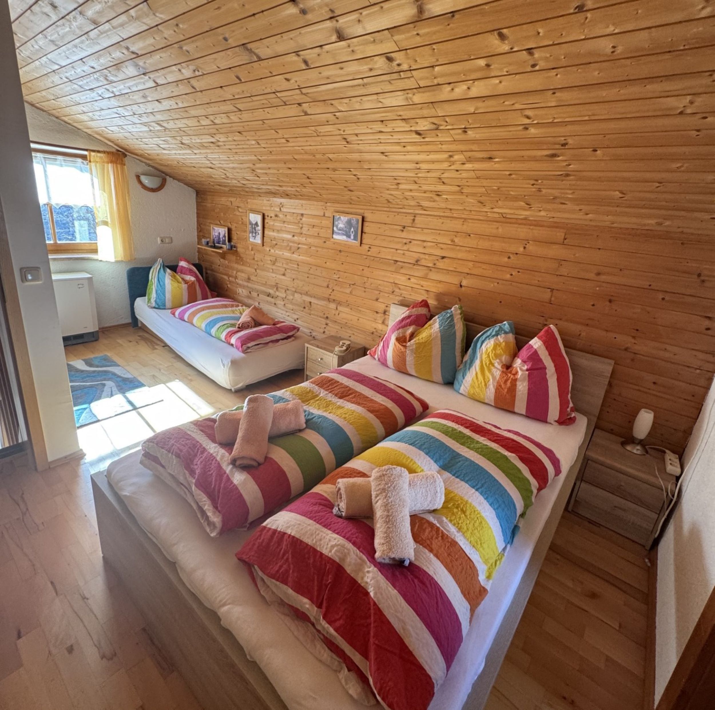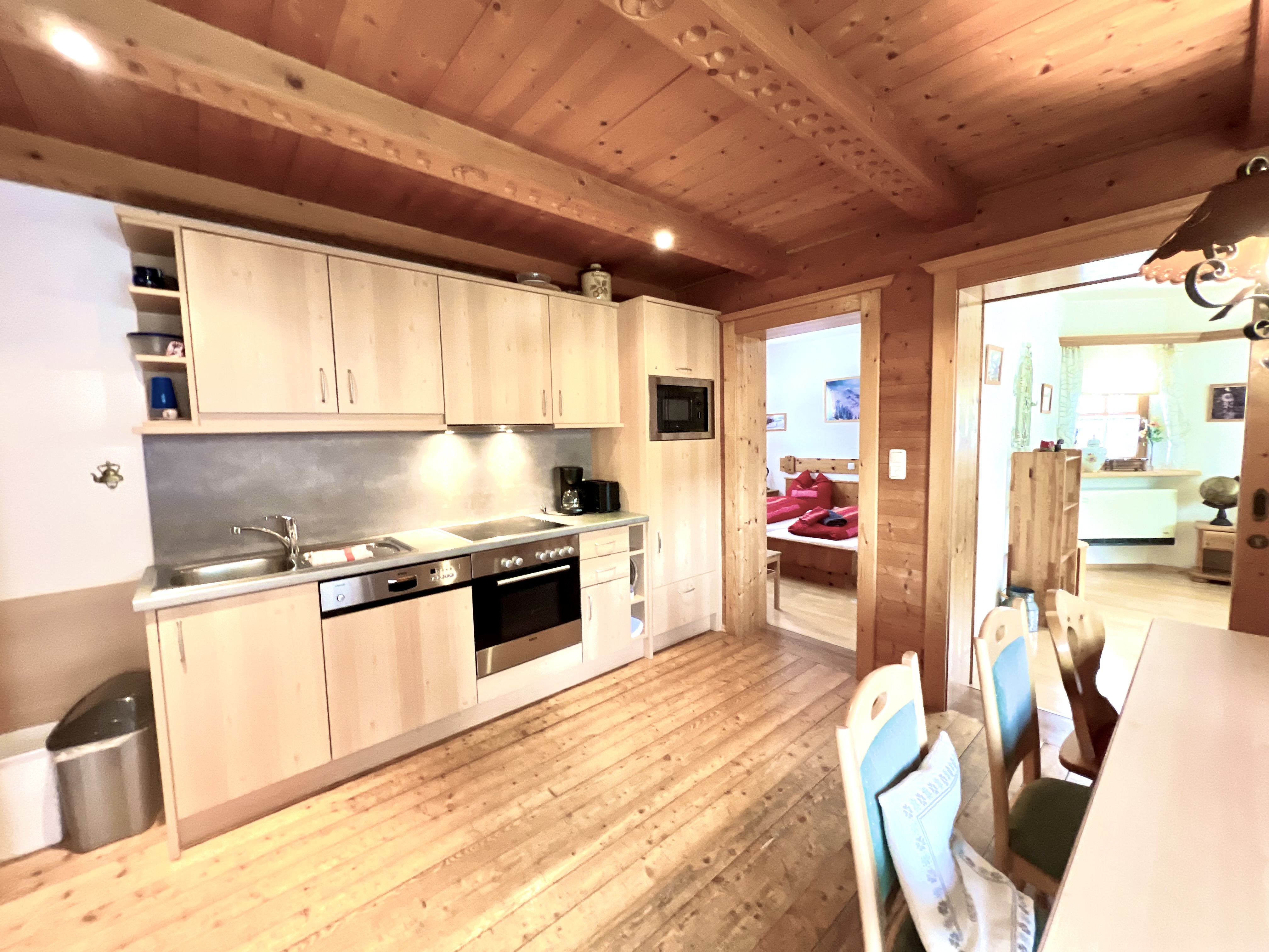 Ett helt hus uppdelat i 5 separata lägenheter, alla med eget kök och badrum. 1 x 3-rumslägenhet för 5 personer, 2 x 3-rumslägenheter för 4 personer vardera, 1 x 2-rumslägenhet för 3 personer och 1 x 2-rumslägenhet för 2 personer. Dessutom finns det ett ”stüberl” i huset där 10-12 personer kan samlas för en mysig spelkväll.